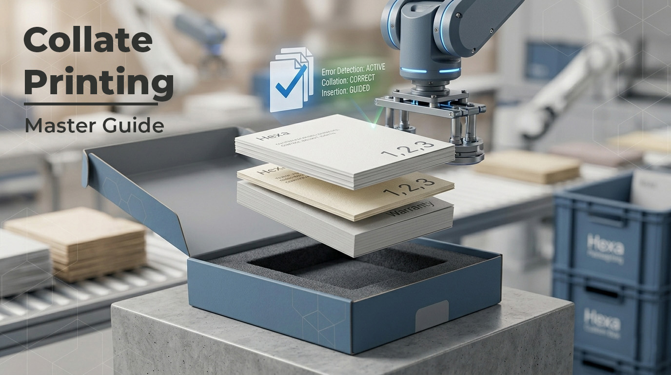 Understanding the technical distinction between “collated” and “uncollated” printing is the first step toward optimizing your assembly workflow. At Hexa Custom Boxes, we often see businesses default to one method without considering the downstream impact on their labor costs and packaging speed. Choosing the right method isn’t just about printing, it’s about engineering the physical flow of your product components.